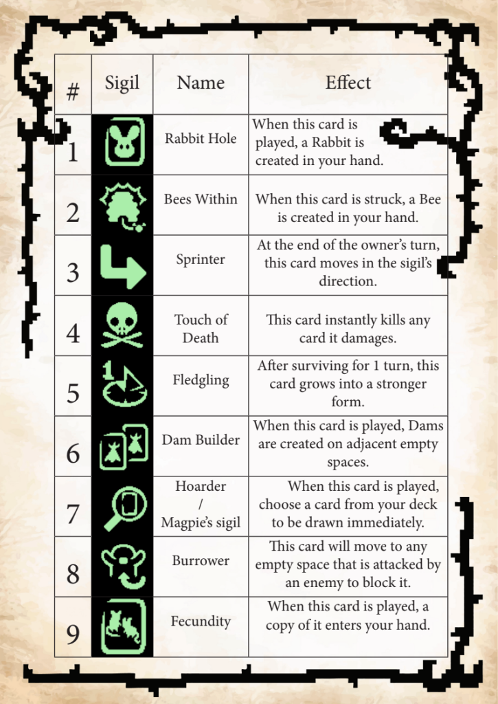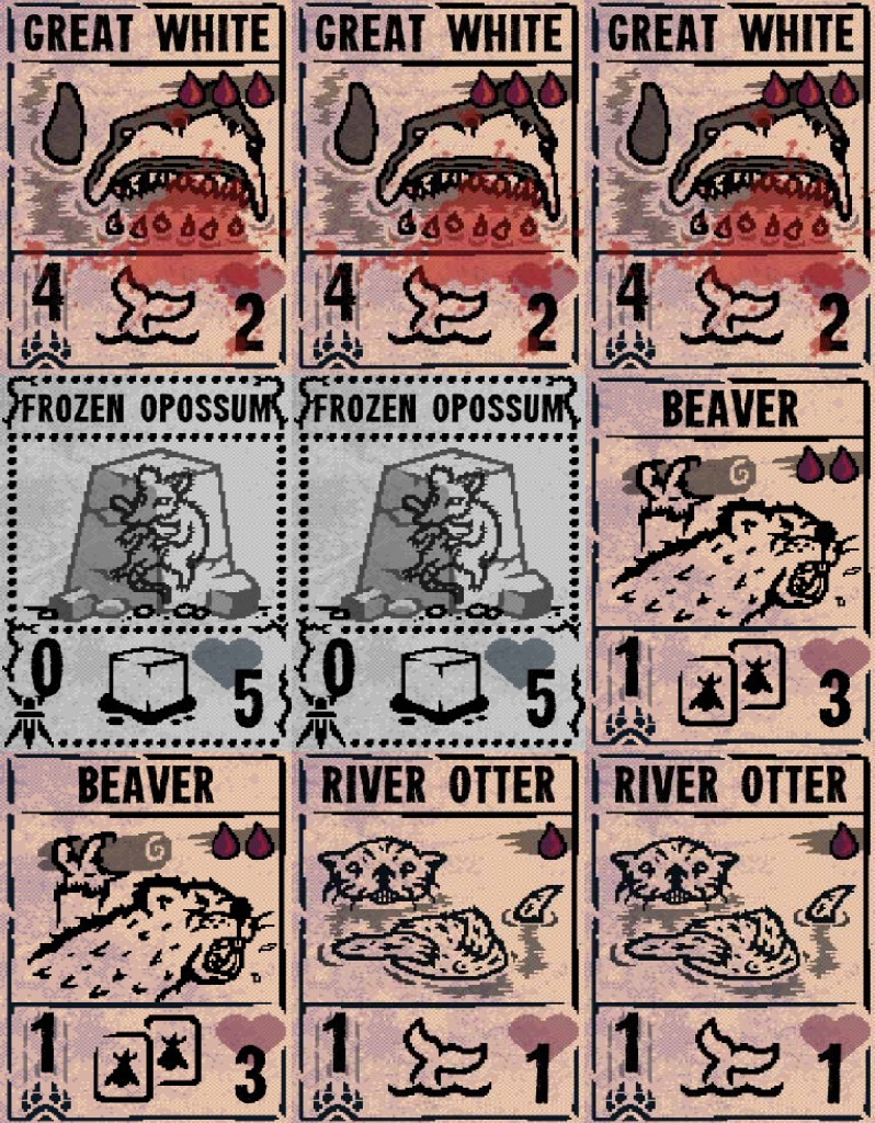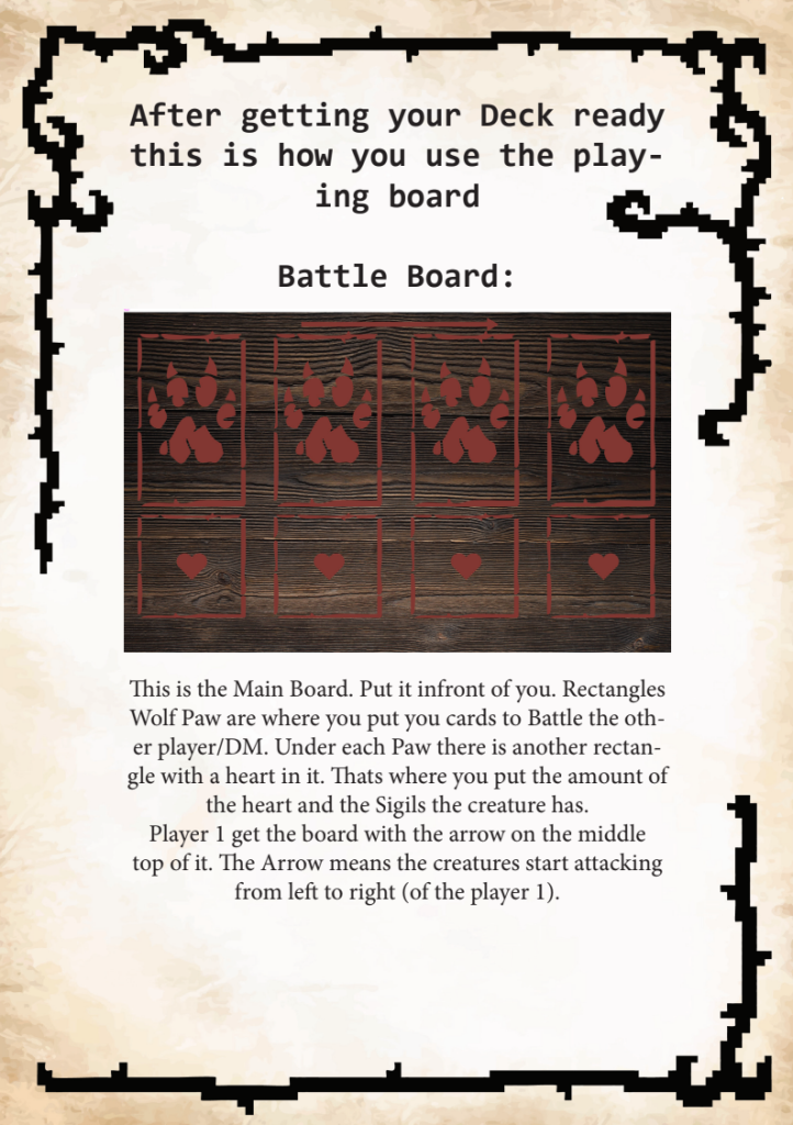 My largest and most comprehensive project was the design and production of a fully playable board game inspired by the card game Inscryption. The project involved adapting the original concept into a physical, fan-made board game format while introducing original mechanics and design elements.