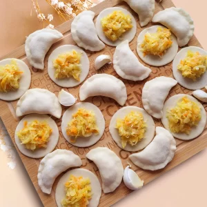 (10 g suolaa / 1 l vettä) suhteessa 1:4 puolivalmiita tuotteita ja vettä. Keitä 2-4 minuuttia sen jälkeen kun varenikit on nousseet pintaan.